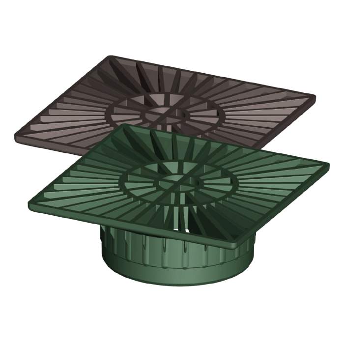 The 9” square pipe grate is designed to fit 6” pipe. Just pop it into the pipe, and prevent critters, leaves, and many other small nuisances from going into your pipe. Fade resistant, available in black or green.